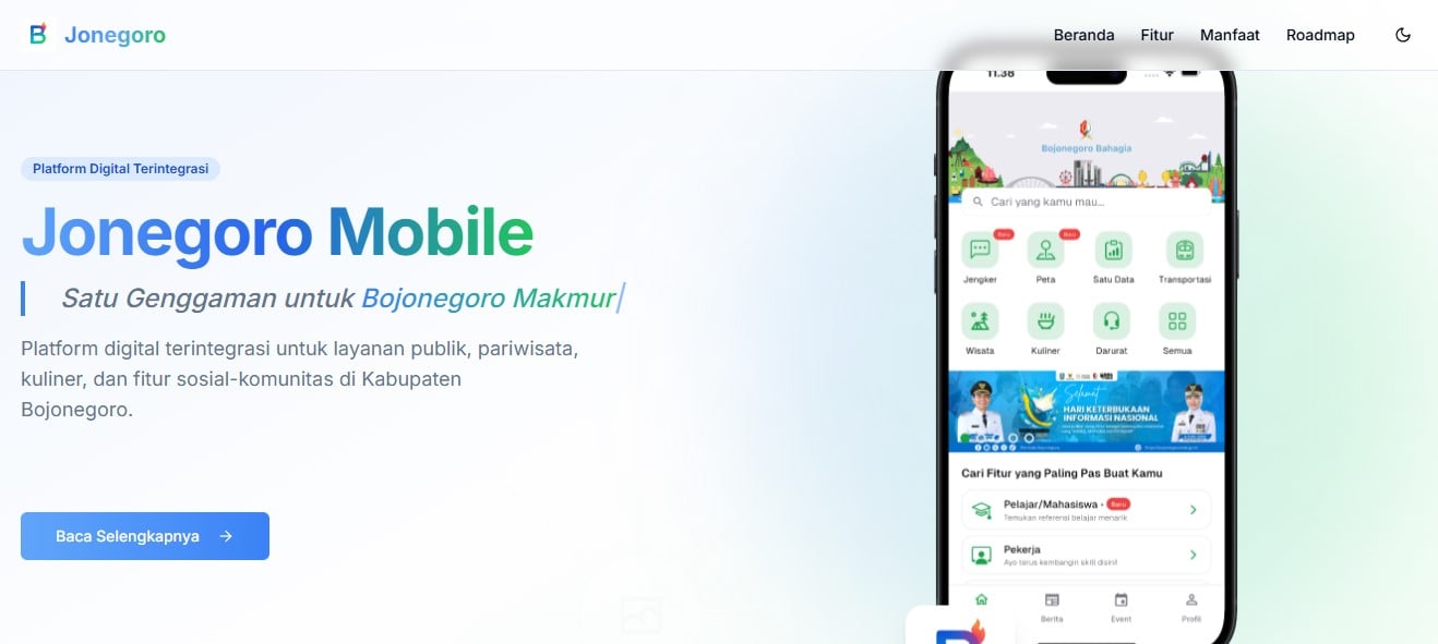 Haris menjelaskan, Jonegoro Mobile dirancang sebagai aplikasi serbaguna yang menggabungkan berbagai layanan dalam satu platform digital.