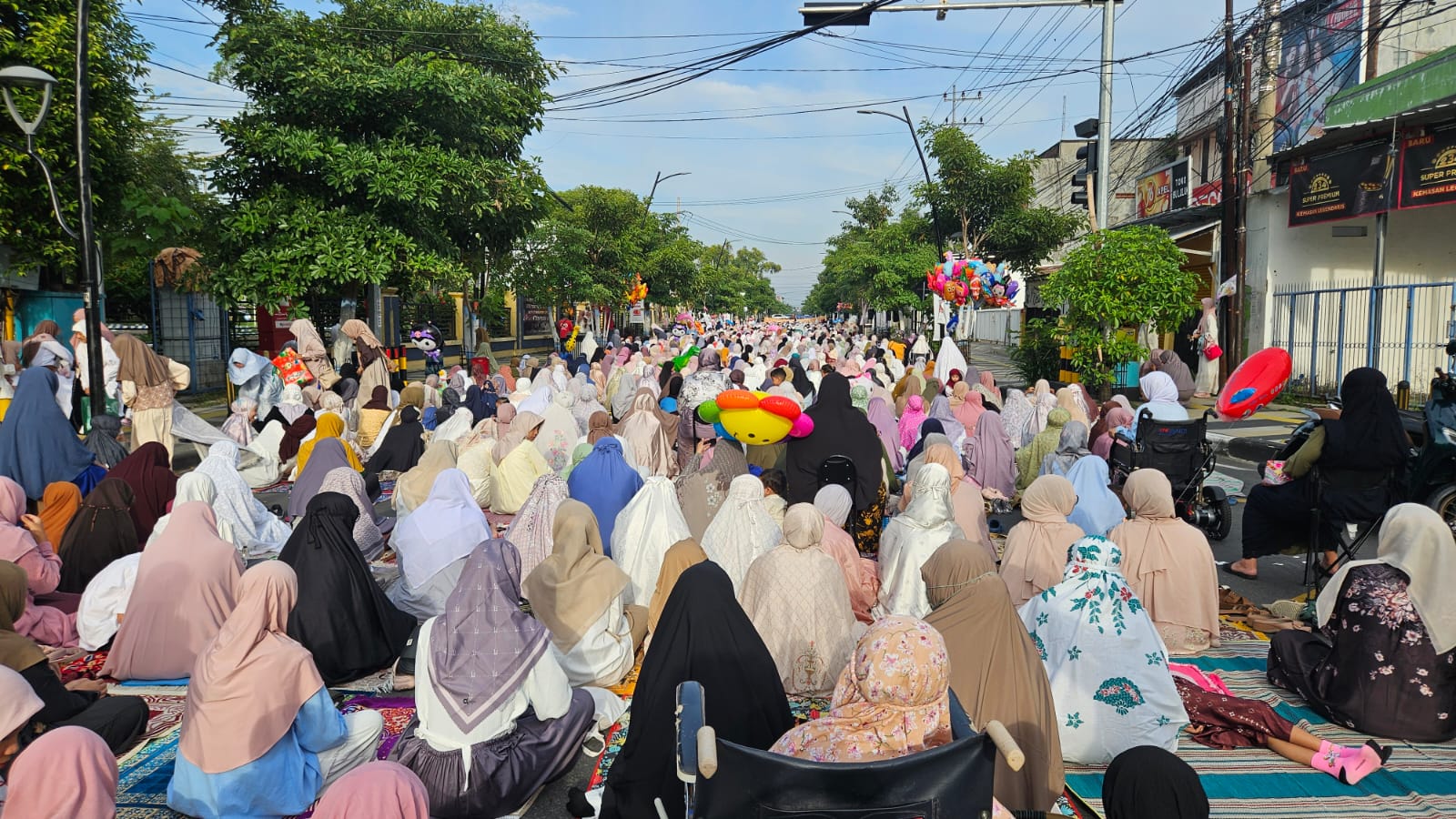 Sejak pagi hari, ribuan jamaah telah memadati area. Karena kapasitas masjid tidak mampu menampung seluruh jamaah, pelaksanaan salat dilakukan di halaman masjid dan sepanjang Jalan Teuku Umar, yang ditutup sementara selama kegiatan berlangsung.